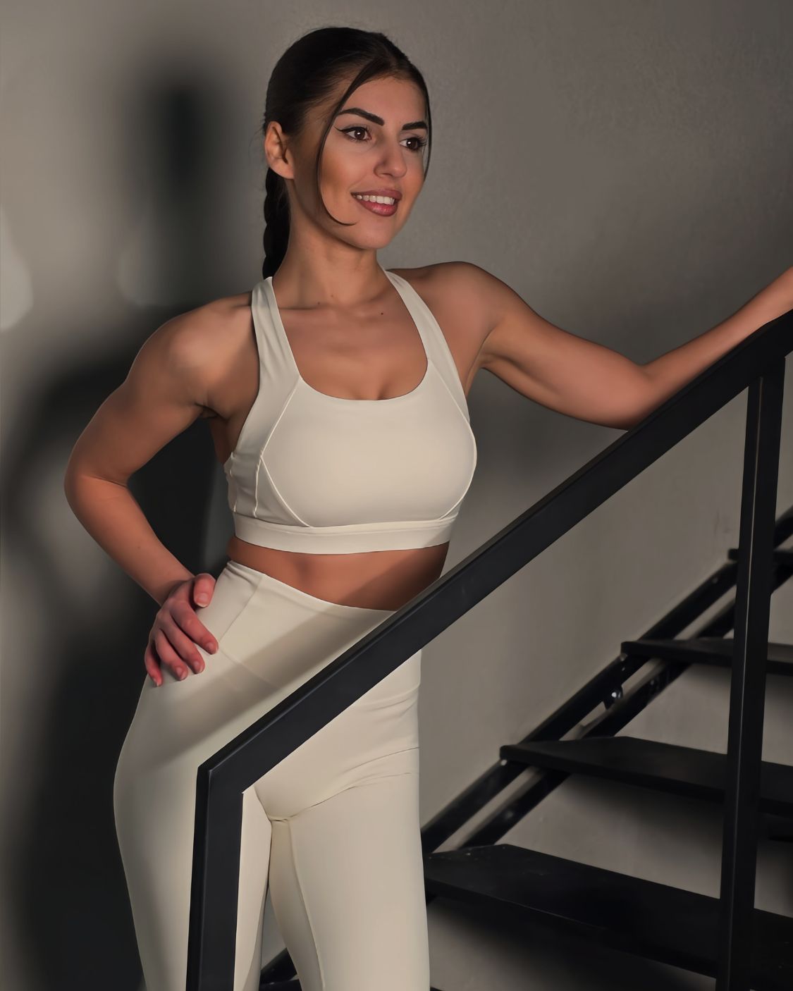 "𝗠𝗔𝗚𝗡𝗘𝗧𝗜𝗖" - повдигащо бюстие в цвят “ванилия“. Изработен от еластична и лека материя, която приляга плътно по тялото и повдига бюста. Бюстието е с вградени, премахващи се подплънки и кръстосани презрамки, които придават модерен и изчистен вид. Бюстието е подходящо за интензивни тренировки. Комбинира се чудесно със спортно яке и клин от страницата ни.